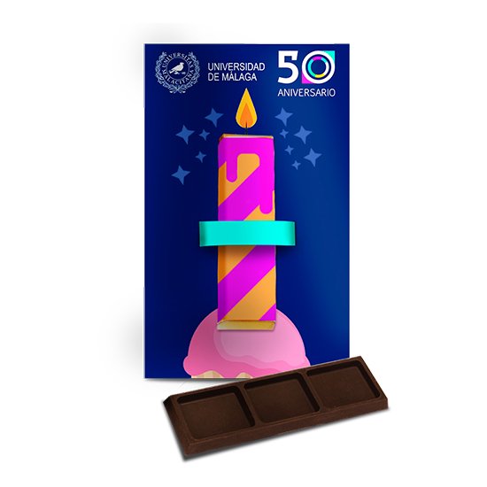 Description: postcard (70×120 mm) containing a 20g bar of pure or milk chocolate.