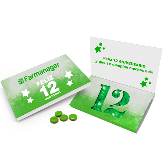 Description: cardboard chocolate card with a number-shaped die cut filled with chocolate lentils of various colors or jelly beans.