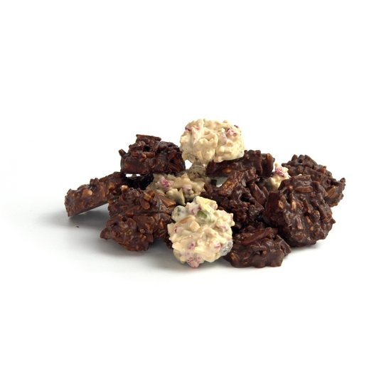 Description: delicious rocks of bitter, milk, white, almond or strawberry chocolate.
