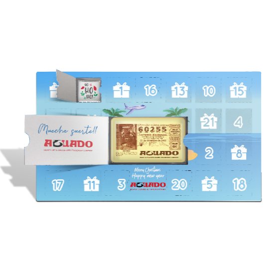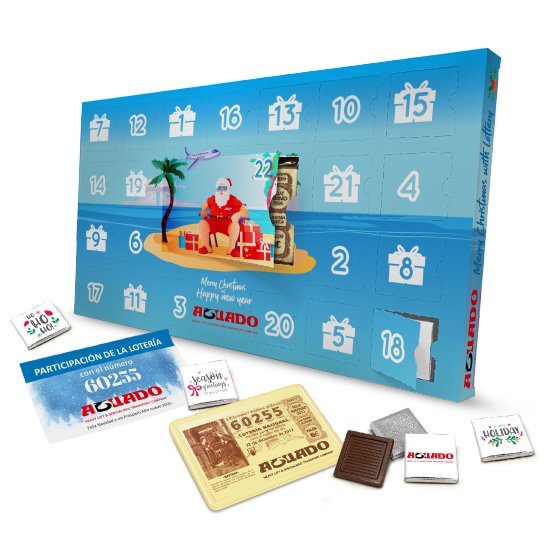 Description: Advent calendar (322x190x20mm) of 22 days with 21 chocolate Neapolitans and a participation of your lottery number in chocolate.