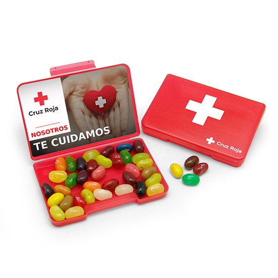 Description: pill box (100x65x15 mm) with jelly beans in assorted flavors. Other candies to consult.