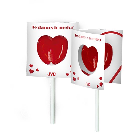 Description: die-cut diptych with heart lollipop.