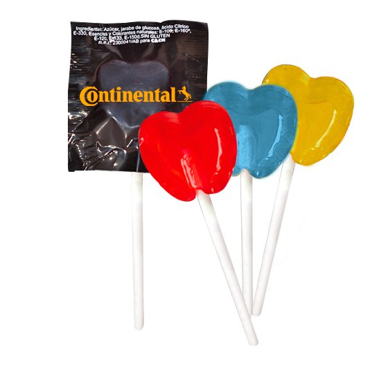 Description: 7g heart-shaped hard candy lollipop with transparent, white paper or paper stick.