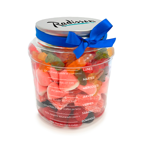 Description: large jar (Ø125×150 mm) with metal lid with gummy, perfect for daily tasting. We adapt the division of days according to the stay.