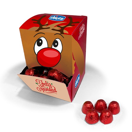 Description: mini cardboard dispenser (110x70x72mm) with 25 chocolates.