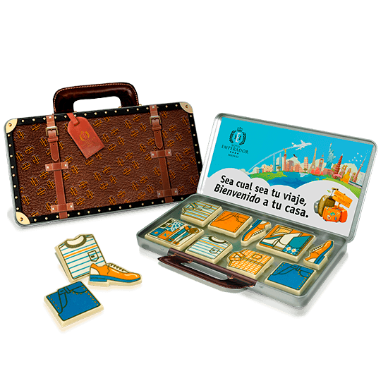 Description: steel can with greaseproof paper and card, with personalized chocolates according to your sector.