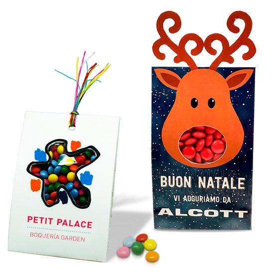 Personnalisation : carton cartonné découpé avec un design personnalisé et personnalisable de 1 à 4 couleurs. Vous pouvez choisir la couleur des lentilles en chocolat (standard ou multicolores).