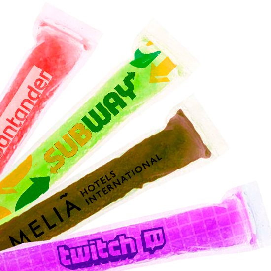 Description : flashs liquides (260x40mm) à congeler aux saveurs assorties.