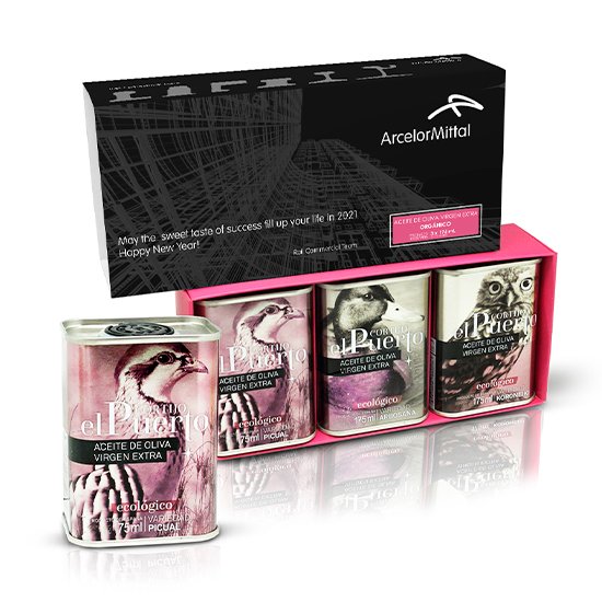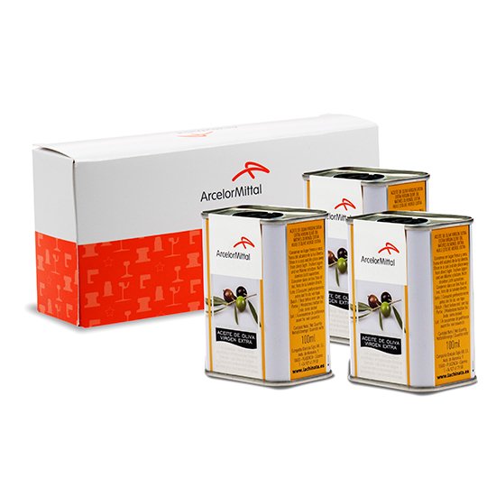 Description : 2/3 boîtes d’huile d’olive extra vierge de 100 ml. Présenté dans une boîte (200x85x45 mm).