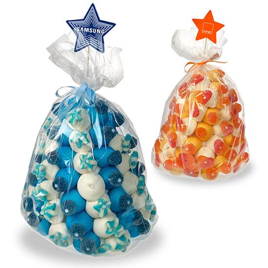 Personalización: cartela personalizable de 1 a 4 colores. Posibilidad de elegir el color del marshmallow y de las gominolas adaptándolas a sus colores corporativos.
