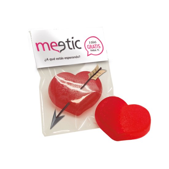 Descripción: gominola en forma de corazón presentada en bolsa (75×60 mm)con cartela.