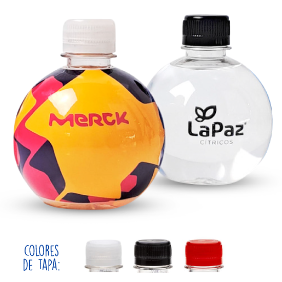 Descripción: botella redonda personalizada con 330 ml de agua mineral.