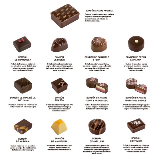 Descripción: caja de cartón duro forrado con papel/nácar. Contiene un amplio surtido de 50/55 piezas aprox. de bombones artesanos de diferentes sabores con una excelente calidad. Incluye tarjetón interior para escribir tu mensaje personalizado de hasta 350 caracteres.