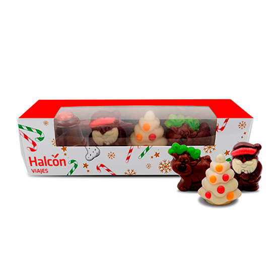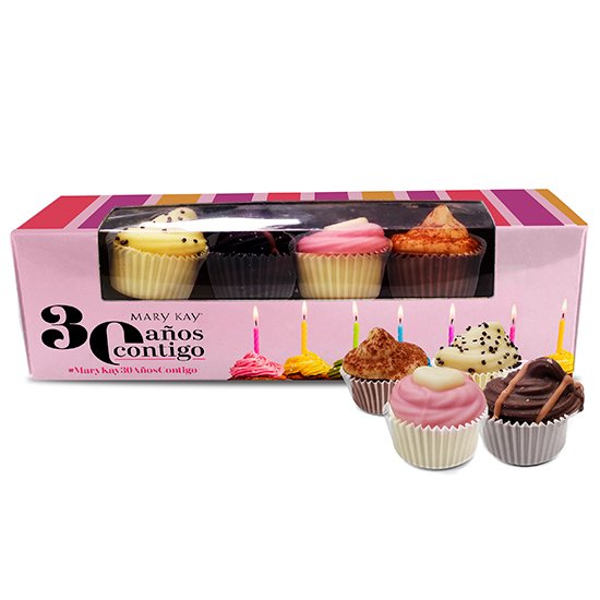 Descripción: caja personalizada (135x35x35 mm) con ventana con 4 bombones con forma de cupcakes.