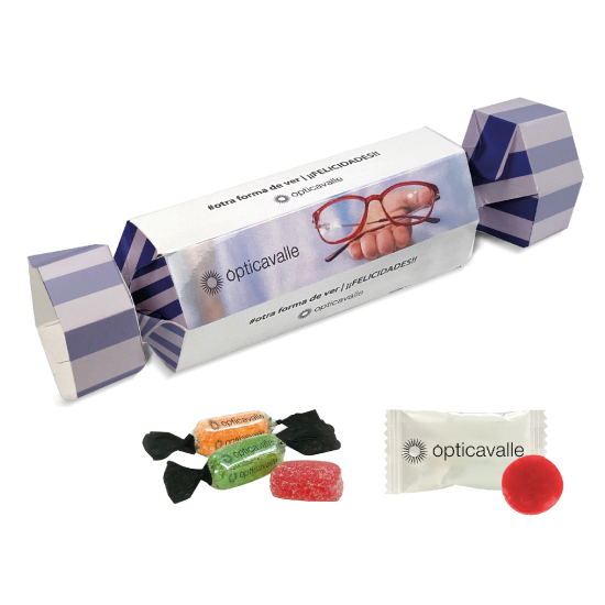 Cantidad mínima: 100 uds con caramelos estándar. Posibilidad de personalizar los caramelos a partir de 1.250 cajas.