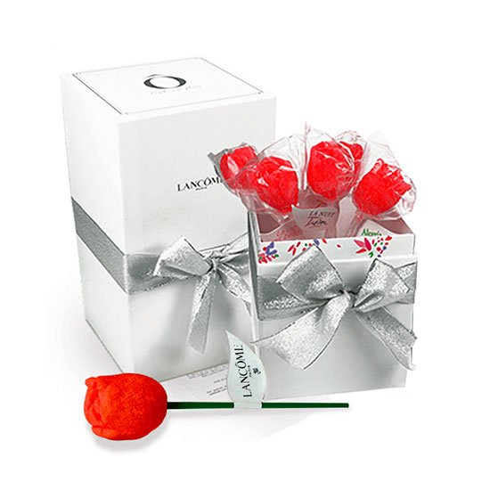 Descripción: caja de cartón duro con 5 rosas de gominola.