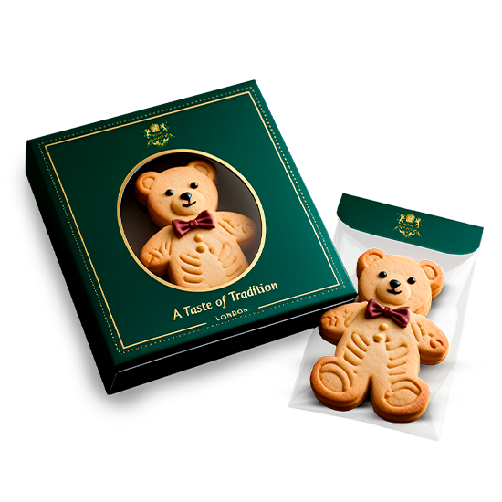 Descripción: deliciosas galletas hechas en nuestro obrador, con la forma de tu producto o marca, decoradas con fondant o personalizadas a todo color mediante impresión. Sabor: mantequilla. Presentada en caja con ventana.