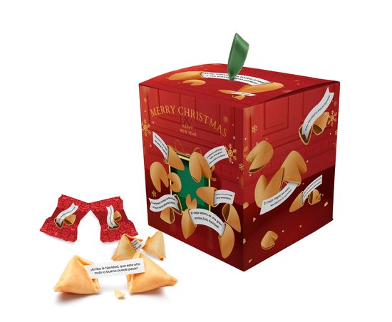 Descripción: galleta de la fortuna envasada individualmente en formato flowpack o presentada en caja de 8 uds.