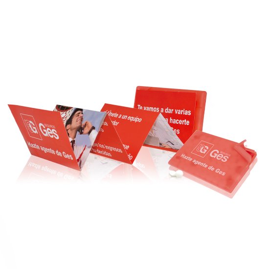 Descripción: caja de mints con flyer desplegable de 6 cuerpos con tu programa electoral.