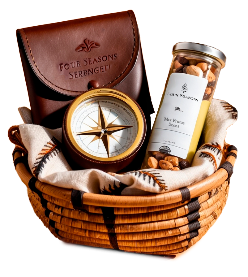 Descripción: Contribuimos a que los hoteles de turismo activo, enclavados en el corazón de la naturaleza, ofrezcan a sus huéspedes un producto exclusivo que refleje la esencia de la montaña y el aire libre. Compuesto de mochila estanca con snacks de frutos secos, termo, brújula, etc. Creado a medida de cada experiencia.